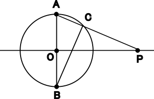 線分APと円Oとの交点をCとし,点Bと点Cを結ぶ。